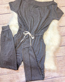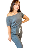 The Lounge In Style Jumpsuit is a off the Shoulder Super Comfy Short Sleeve Jumpsuit. The bottom is a Jogger style for a casual look. Wear this around the house or on an errand kind of day. Stay comfortable and Stylish all in one.