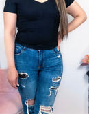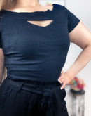 The Sofia top is a peekaboo knit fitted style top with cute off the shoulder look. It’s not short like a crop top but the ribbed material makes for a flattering fit. Runs true to size.