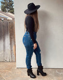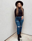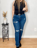 These high rise skinny jeans are the perfect jeans to hold you in while comfortable at the same time. Cute distress gives it a nice casual look. Pair with your favorite tops and feel and look amazing.